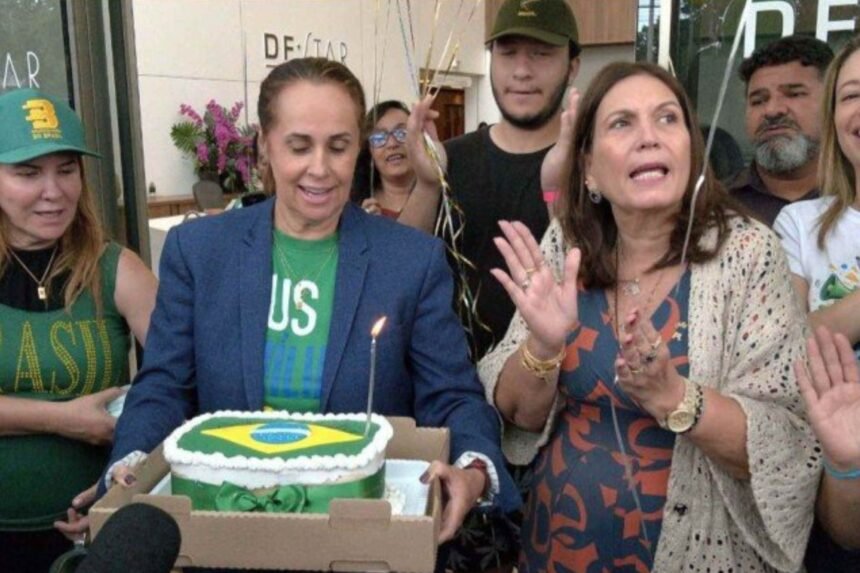 A parlamentar também defendeu a concessão de prisão domiciliar para Jair Bolsonaro, afirmando que seu retorno ao sistema prisional “significa uma sentença de morte”. Mais tarde, outro bolo de aniversário foi distribuído no local.