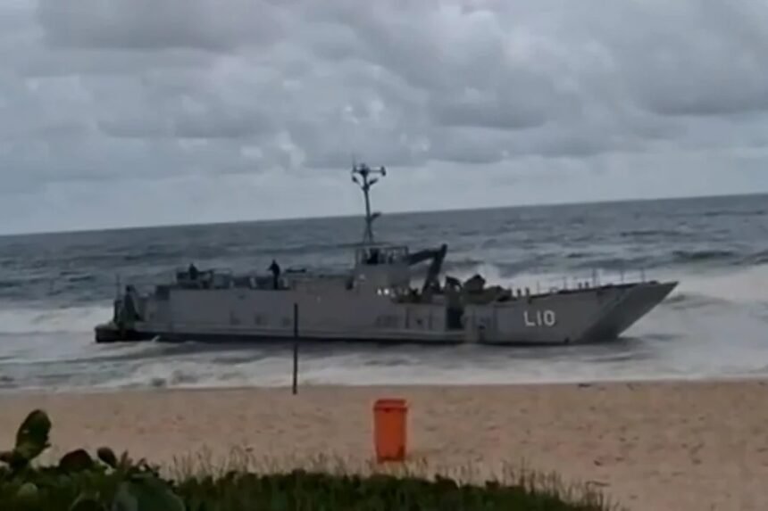 Uma embarcação da Marinha do Brasil chamou a atenção de moradores e frequentadores da Praia da Macumba, na Zona Oeste do Rio de Janeiro, ao se aproximar da faixa de areia no fim da tarde de segunda-feira (9). O navio militar foi visto muito próximo da orla, no trecho localizado no bairro do Recreio dos Bandeirantes, gerando curiosidade entre banhistas e surfistas que estavam no local. A Praia da Macumba é conhecida por suas ondas fortes e pela prática de esportes como o surfe, além de integrar o conjunto de praias do litoral do bairro.