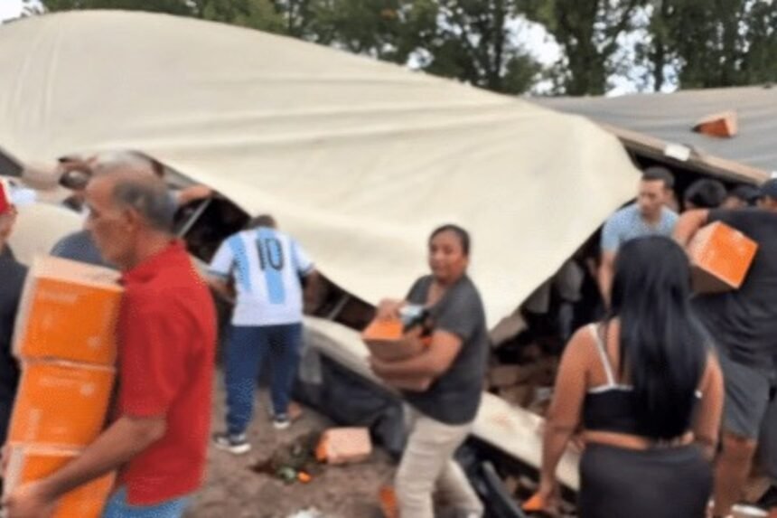 O jornal argentino La Nación informou que o tombamento aconteceu depois que uma Toyota Hilux tentou desviar de um carro mais lento e acabou encostando no caminhão. Para evitar o impacto, o motorista do caminhão foi para o acostamento, colidiu com um semirreboque parado e tombou, espalhando a carga pela pista, o que levou ao saque. A polícia chegou pouco depois para desobstruir a rodovia e organizar a retirada do veículo.