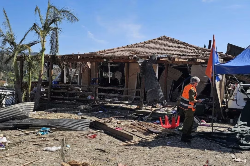 Imagens e vídeos registrados no local mostram um cenário de destruição, com casas danificadas, árvores retorcidas e crateras formadas após a queda dos fragmentos do míssil iraniano interceptado. Segundo o MDA, a área total atingida tem cerca de 150 metros de raio, concentrada em duas crateras separadas por aproximadamente 10 metros, evidenciando a força do impacto dos destroços.