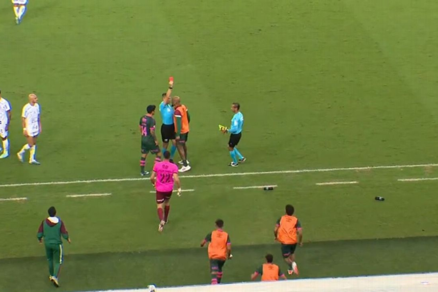 A arbitragem inicialmente não puniu o lance de forma imediata, mas, após revisão do VAR, o árbitro Davi de Oliveira Lacerda decidiu aplicar o cartão vermelho direto. Segundo relatos, Allan teria levado a mão às partes íntimas e feito um gesto provocativo, acompanhado de uma fala ofensiva direcionada ao adversário. A atitude foi considerada conduta antidesportiva grave, justificando a expulsão. O episódio ainda contribuiu para aumentar o clima de confusão, que também resultou na retirada de um membro da comissão técnica do Fluminense.