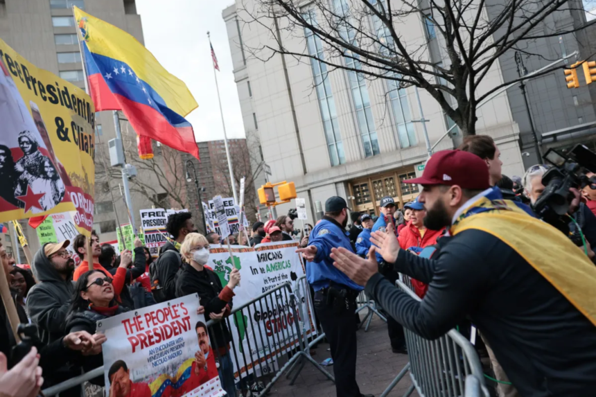 Manifestantes favoráveis e contrários ao presidente venezuelano Nicolás Maduro se reuniram em frente ao tribunal federal em Nova York durante a audiência do líder, gerando um clima de tensão e divisão entre os presentes. Os grupos ocuparam áreas opostas nas proximidades do prédio, refletindo a polarização em torno do caso: enquanto alguns celebravam a captura de Maduro, outros protestavam contra a ação e defendiam sua libertação.