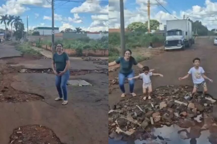 Moradora viraliza ao denunciar rua esburacada no interior de SP - Foto: Reprodução/Instagram