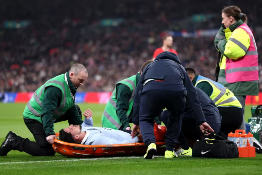 Piquerez sai lesionado em Inglaterra x Uruguai — Foto: Julian Finney/Getty Images