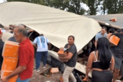 Caminhão que levava azeite ao Brasil tomba na Argentina e é saqueado
