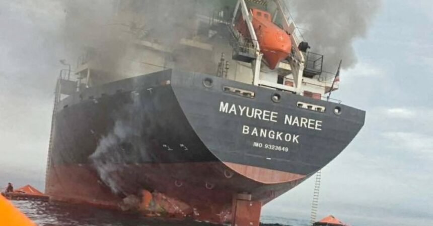 Uma das embarcações envolvidas no ataque foi o cargueiro tailandês Mayuree Naree, que navegava sob bandeira tailandesa quando foi atingido por projéteis e sofreu uma explosão na casa de máquinas, provocando um incêndio e forçando a tripulação a abandonar o navio. A Marinha de Omã resgatou 20 dos 23 tripulantes, mas três continuam desaparecidos, segundo informações das autoridades marítimas da Tailândia.