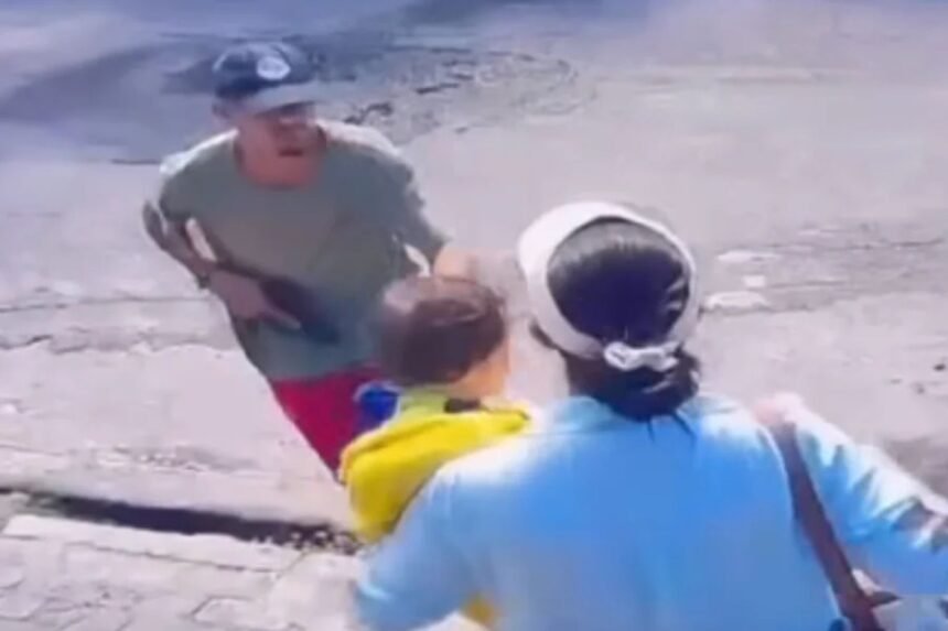 Uma turista de 39 anos foi assaltada na manhã desta sexta-feira (3) em Guarujá, litoral de São Paulo, enquanto segurava o filho de 10 meses no colo, aguardando para entrar em um hotel. O crime foi registrado por uma câmera de segurança.